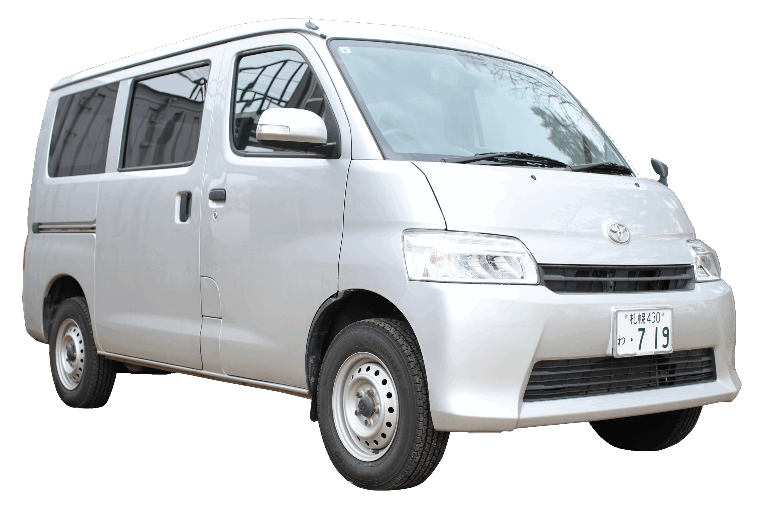 タウンエースは、2名乗りで扱いやすいサイズが魅力のコンパクトバンです。全長4,065mm・全幅1,665mmの程よい車体は、札幌市内の走行や駐車もしやすく、初心者の方でも安心して運転できます。荷室は奥行き215cm・横145cm・高さ128cmと広く、荷物の多い旅行やアウトドアにも便利です。カーナビはGoogle CarPlayに対応しており、スマートフォンをつないで快適に目的地へ向かえます。